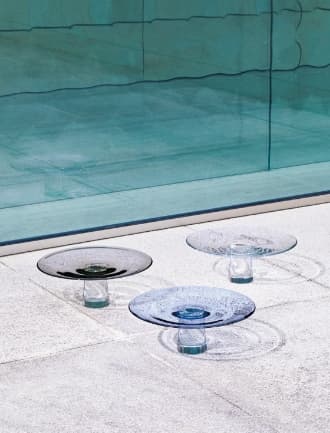 辰野さんが全プロダクトデザインを担う工芸ブランド「KORAI(コライ)」。特定の工芸ではなく、各地の工芸の職人へ協力を依頼して新しい製品をつくるという逆のアプローチで日本の工芸を支えます。2020年の新作は「水の器(L)」。手吹きガラスの器に水を張ると陽の光を受けた波紋が地面に映り込み、自然のゆらぎや移ろいを感じられる贅沢な時間を演出します。