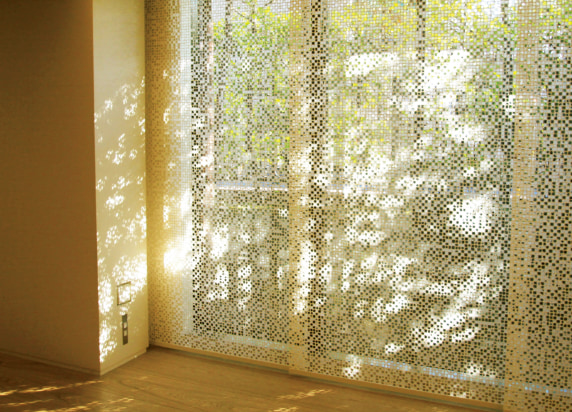 (左) (上)「呼吸する和紙」のスクリーンを用いた「L邸」(設計:隈研吾建築都市設計事務所)。木漏れ日のような柔らかい日差しが注ぎます。