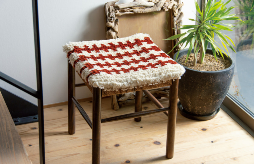 倉敷本染手織研究所製作の「倉敷ノッティング ウールの椅子敷き」。今回紹介したのは