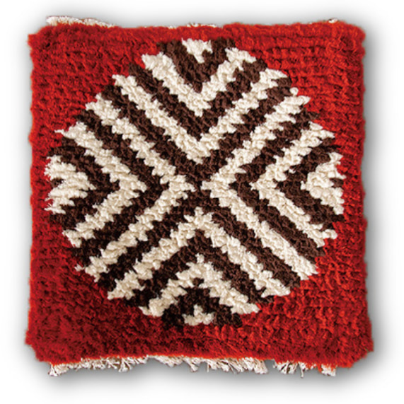 発案者は民藝運動家で同研究所の創設者である外村吉之介。レトロモダンな図柄も外村が考案したものがベースです。アンティークからモダンまで、不思議とどんな椅子にも合う椅子敷き。あなたの椅子にもおひとついかが?