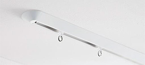 「天井に溶け込む」をコンセプトに、レールの形状は無駄を削ぎ落としたノイズレスデザインにこだわり、シンプルなフォルムで、裏表のないデザインのため窓にも間仕切りにもご使用できます。 ②ランナー投入機能付キャップ