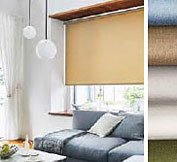 | やや光沢のあるヴィンテージリネンのような表情のあるノン樹脂加工の柔らかいスクリーンです。透過性を抑えた織り方で、全色の透過度ランクが「プライベート」。ユーザーのプライバシーを保ちながら程よく光を採りこみます。