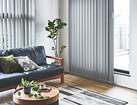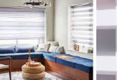 バーチカルブラインド(左側)とロールスクリーン(右側)の同柄展開例→