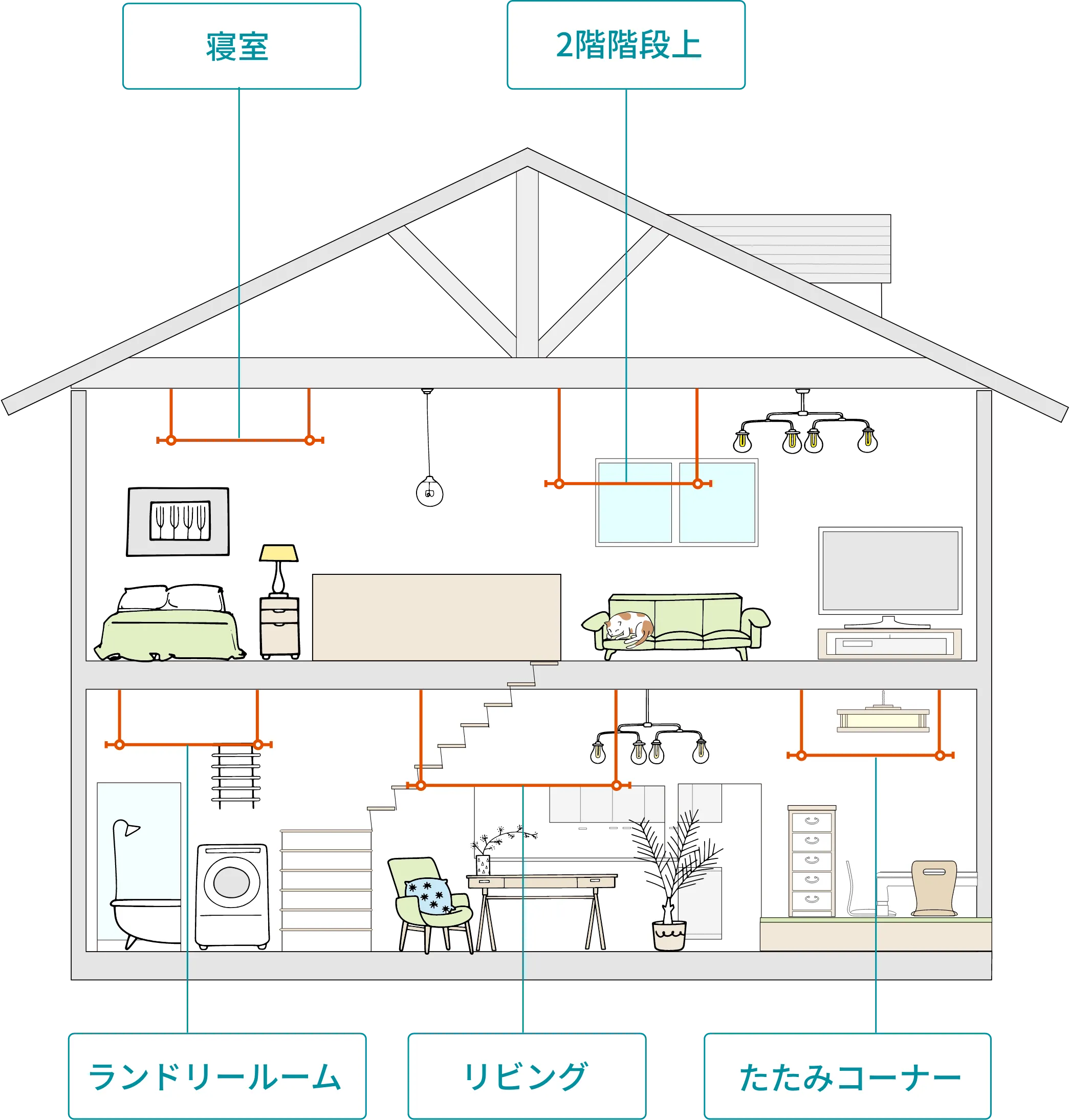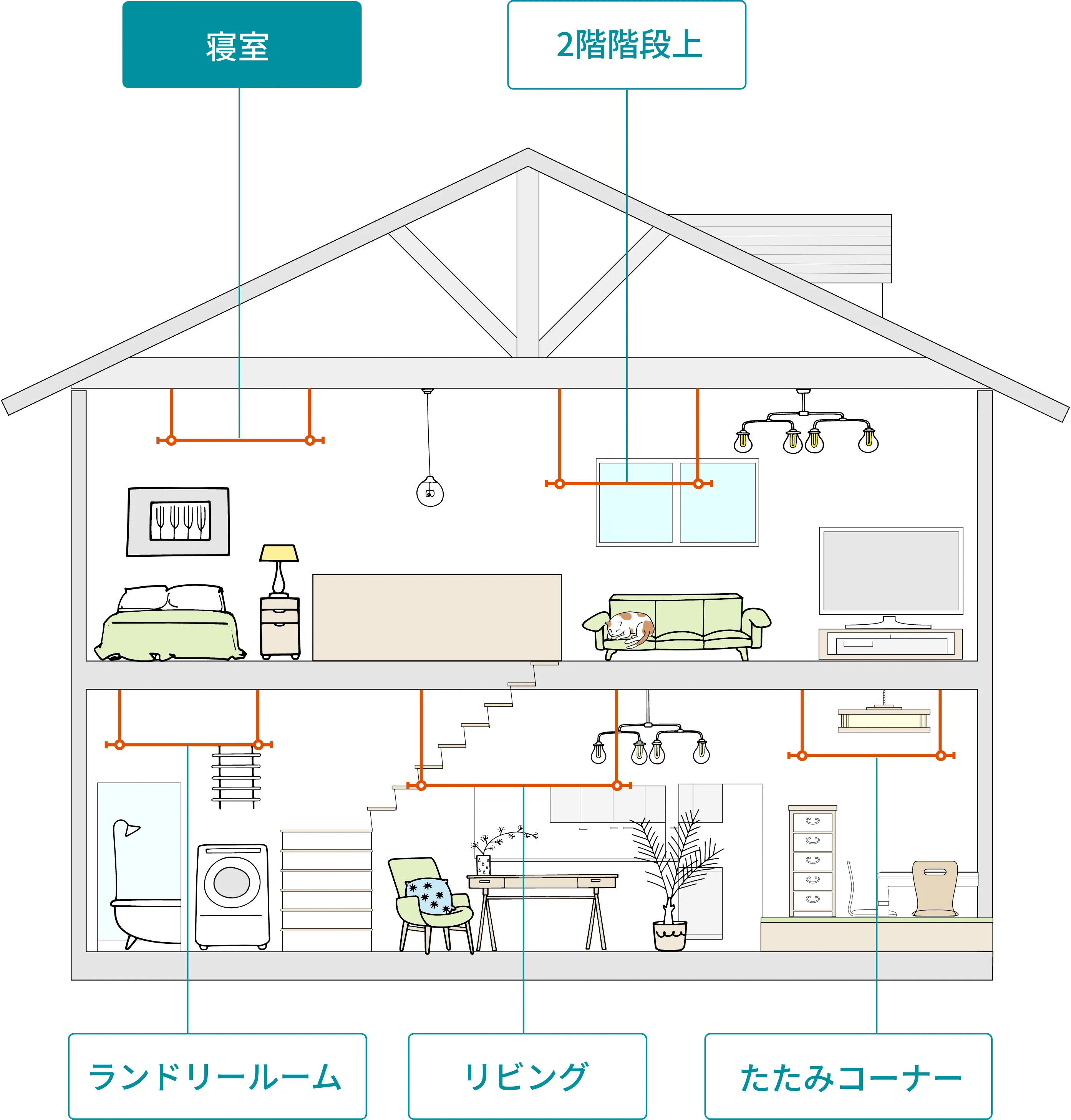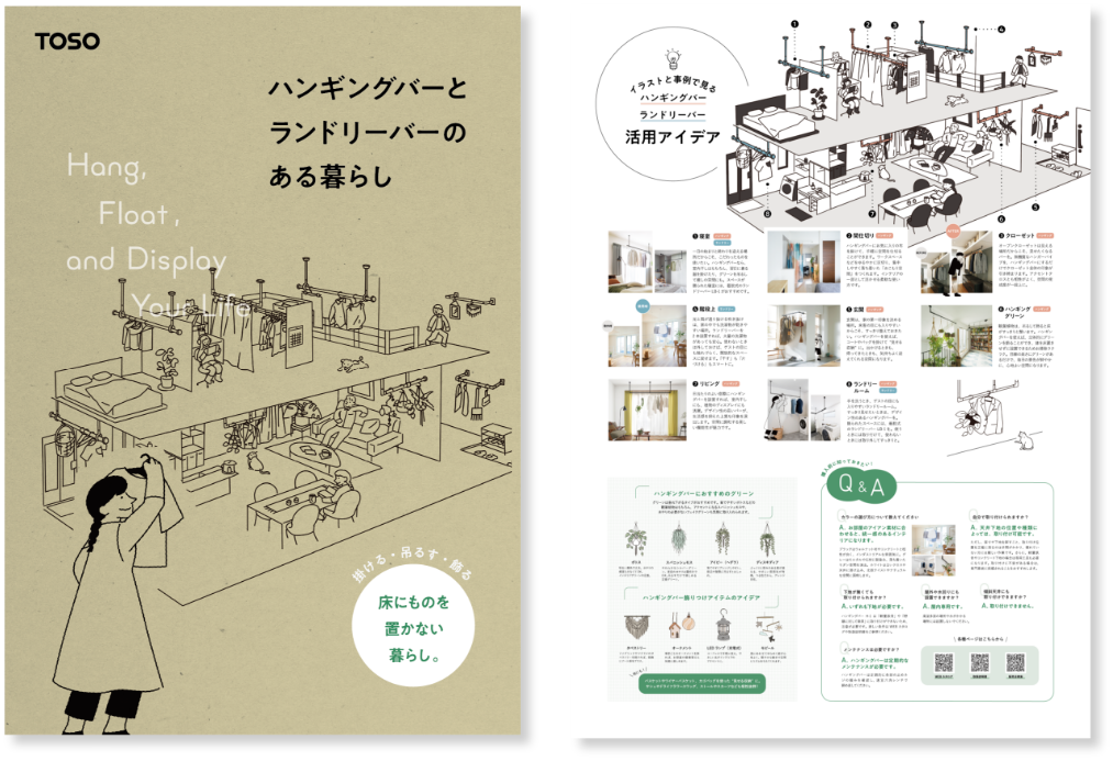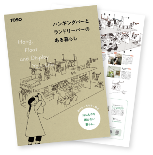 ランドリールーム・玄関・リビング・寝室など、 家のさまざまな場所での設置アイデアを イラストと写真でわかりやすく紹介。 掛ける・吊るす・飾るなどの使い方や、 製品の選び方も一冊でご覧いただけます。