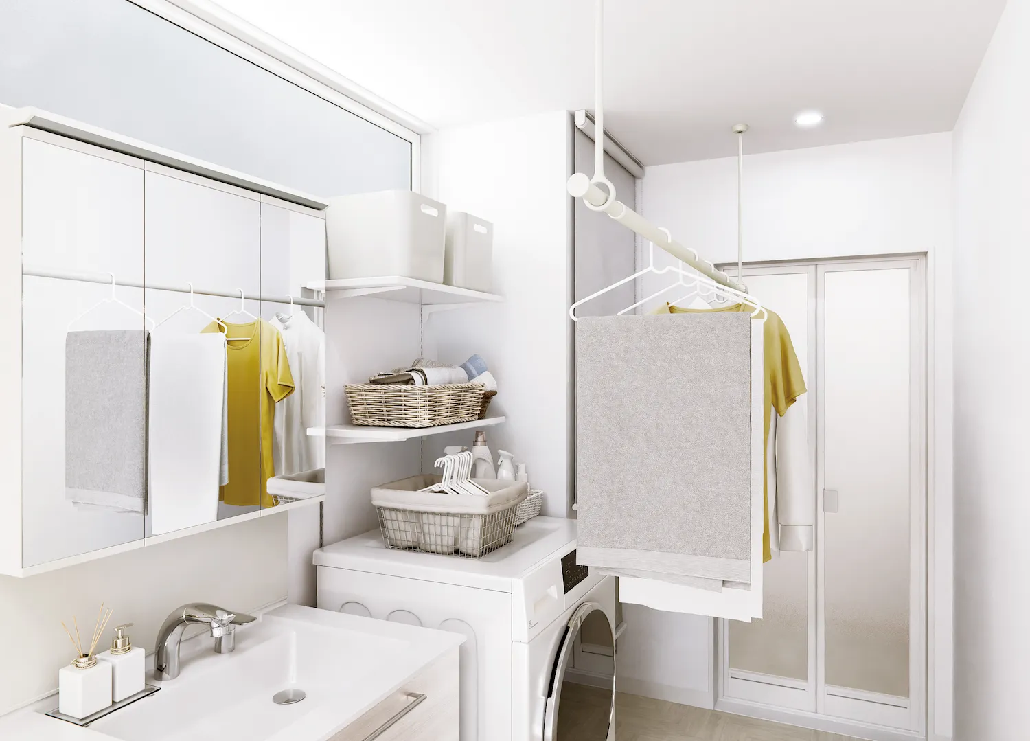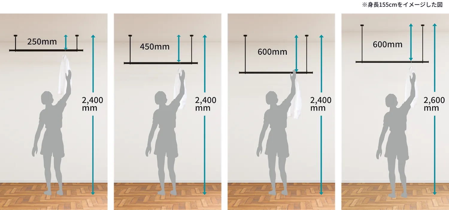 天井の高さや、洗濯物を掛けたときに使いやすい位置に応じて、適切な取り付け高さをお選びください。