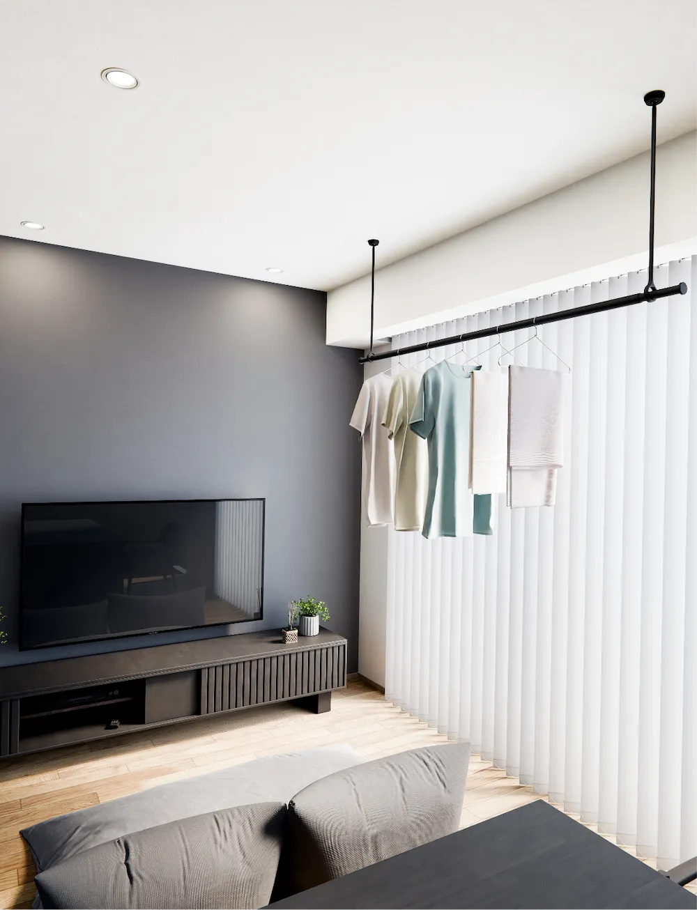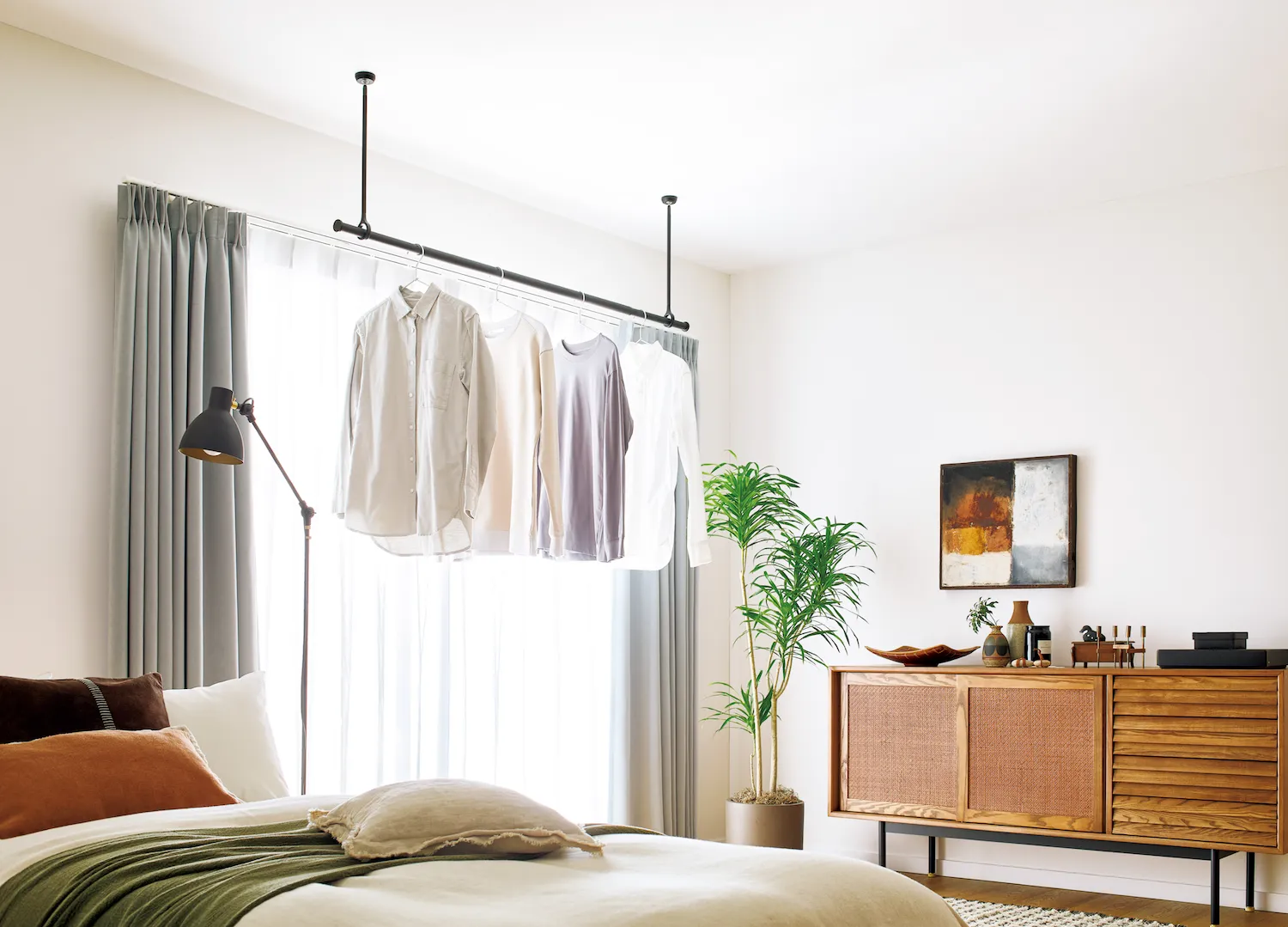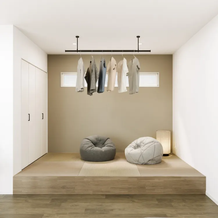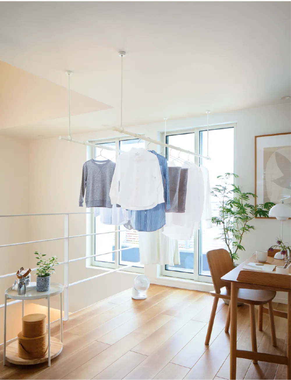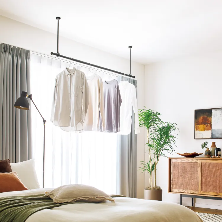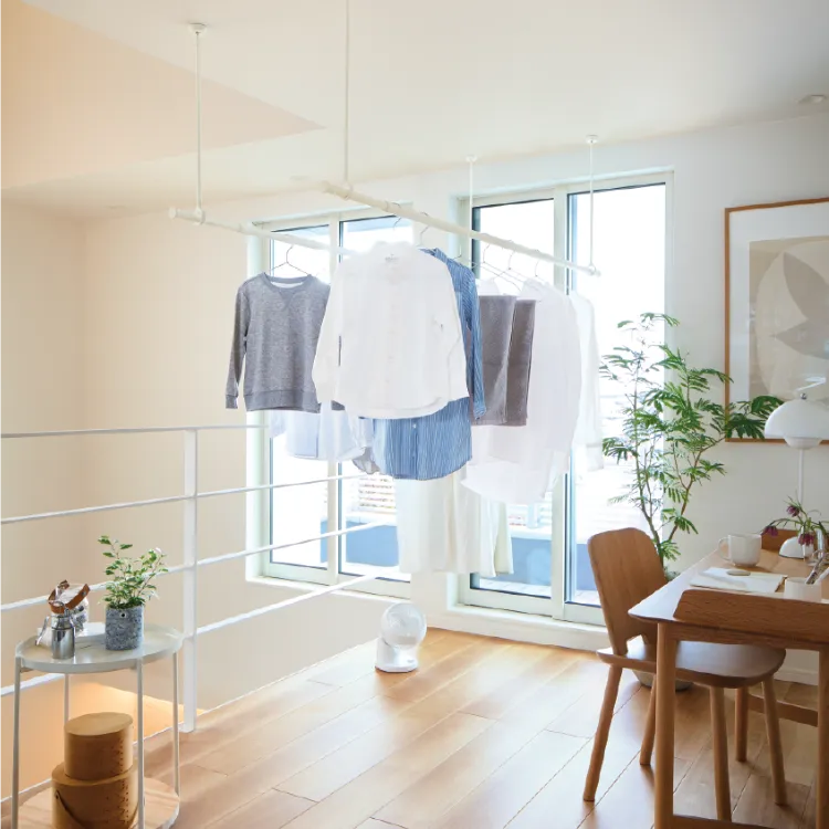 室内物干しも、空間をつくるインテリアの一部。