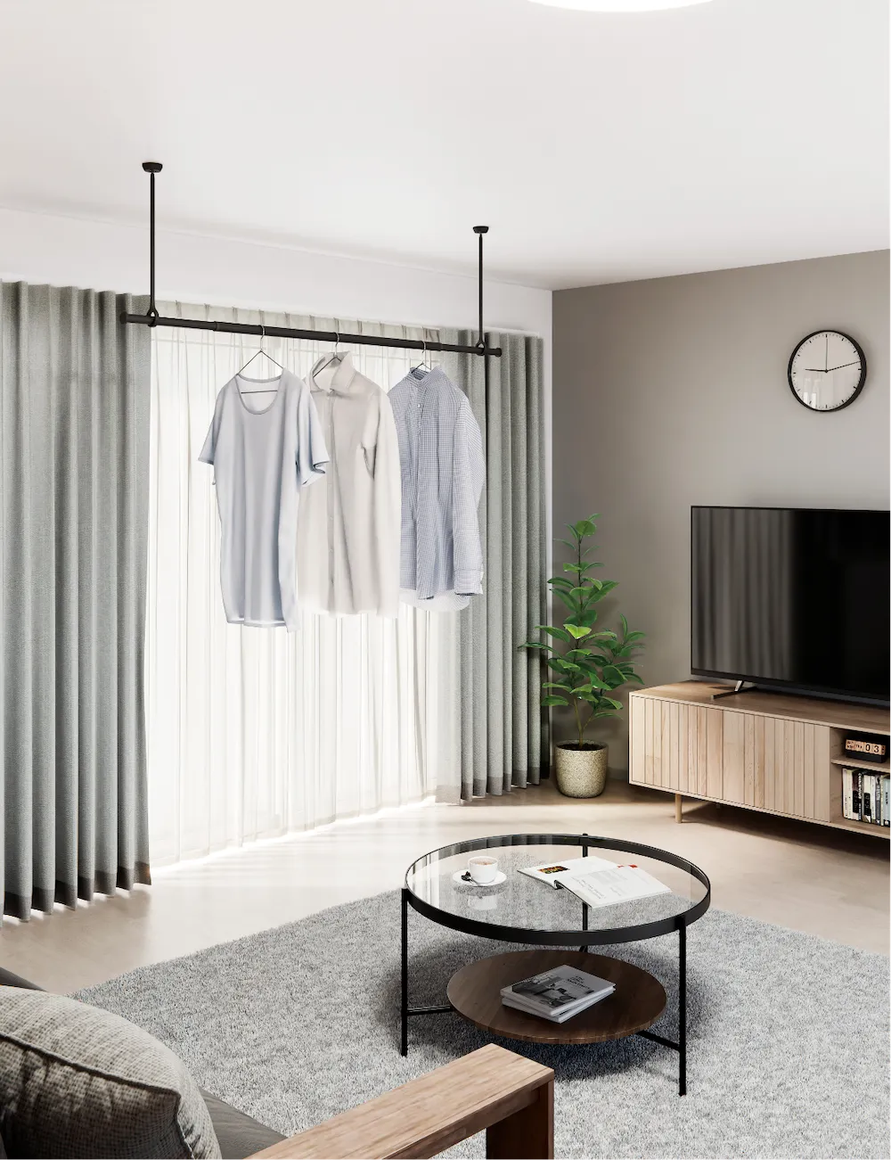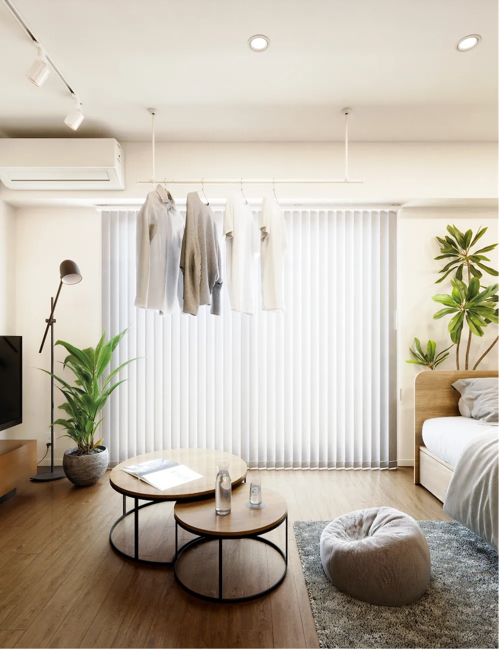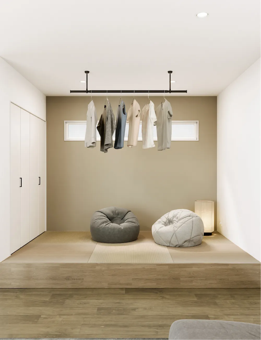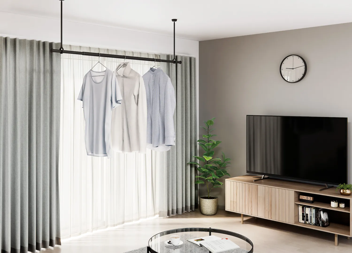 室内物干しも、空間をつくるインテリアの一部。