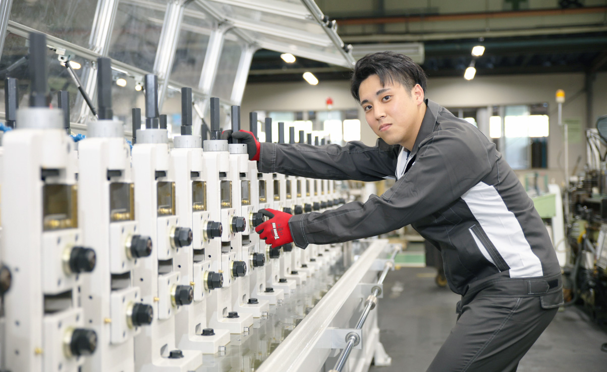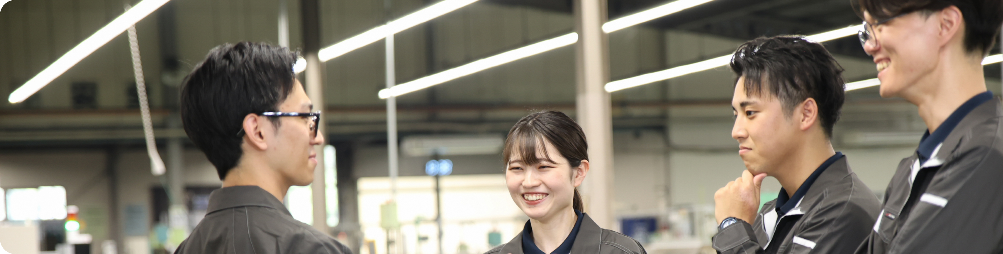 当社固有の生産技術の改善だけでなく、時には、新製品の生産設備を新たに開発・設計を行うなど、 スケールの大きい仕事に携わることができます。 当社のものづくりの要、それが生産技術職の仕事です。