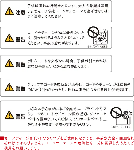 上記のような安全対策品をご使用になっても、事故が完全に回避できるわけではありません。