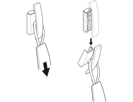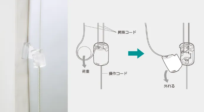 タッセルをかけてカーテンを束ねてください。荷重がかかると本体がベースから外れます。
