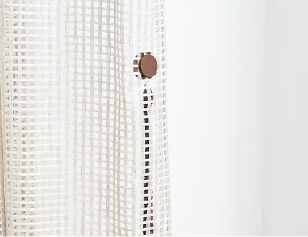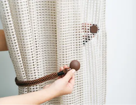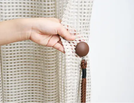 表側のマグネットプレートと裏側のタッセル本体でカーテンを挟み、取り付けます。