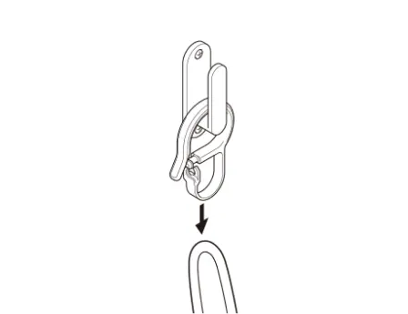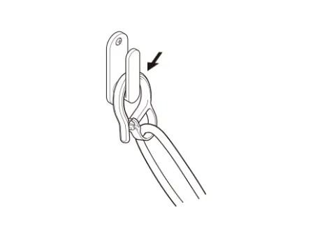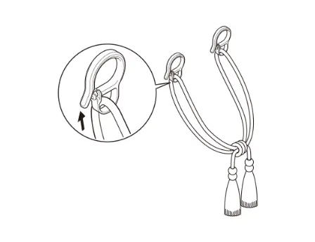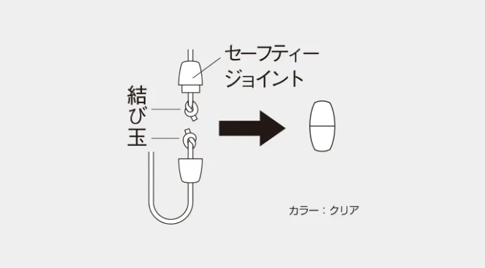 下方向に力が加わるとセーフティーリングからタッセルが外れます。