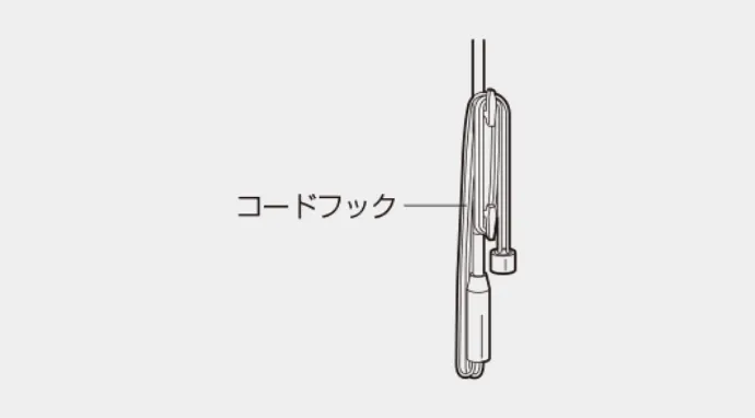 コードに負荷が掛かると外れる仕様です。外れても戻すことができます。